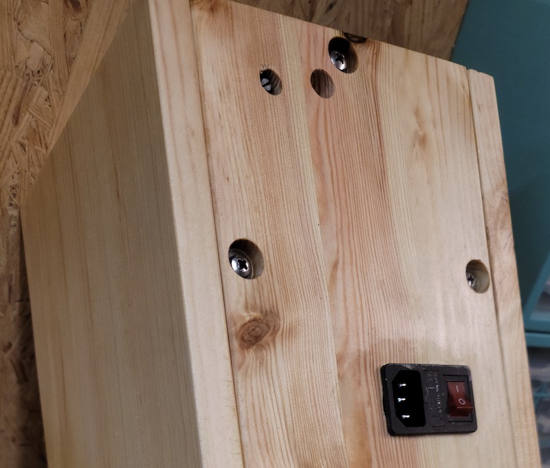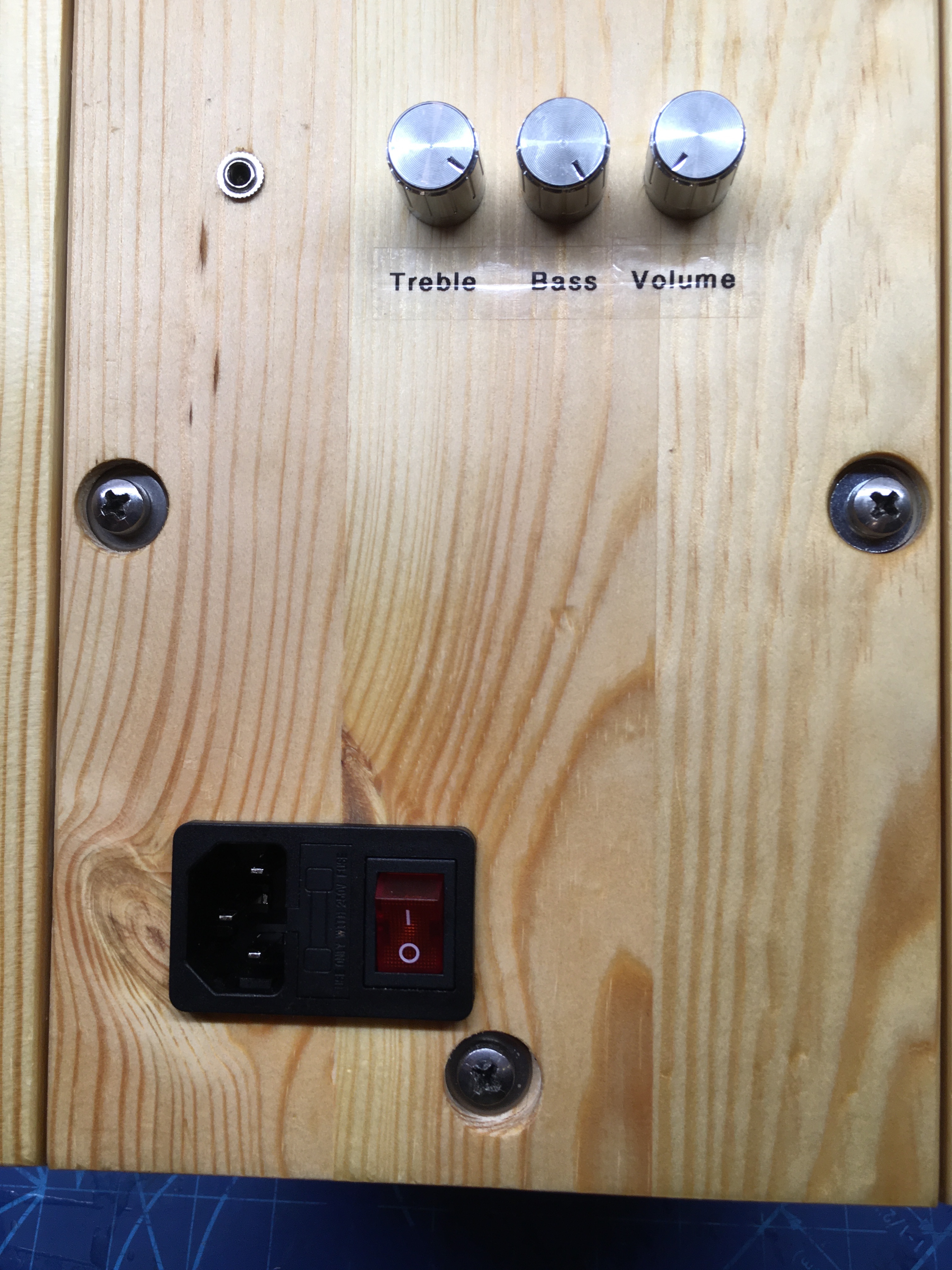 Bei beiden Lautsprecherboxen sind die Bedienelemente der Verstärkermodule durch die Rückwand nach aussen geführt. Damit wird eine mögliche spätere Umrüstung z.B. auf andere Verstärkermodule vereinfacht. Bei der Lautsprecherbox Dongyang wurde das Verstärkermodul am Deckel des Gehäuses montiert. Die Rückwand hat dabei nur die Bohrungen für den Lautstärkeregler und die Klinkenbuchse. Der Lautstärkeregler kann dabei mit einem Schlitz-Schraubendreher betätigt werden. Die Bohrung der Klinkenbuche wurde so ausgelegt, dass handelsübliche 3,5 mm Klinkenstecker verwendbar sind.